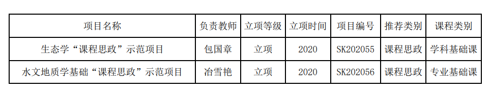 2020年度课程思政“学科育人示范课程”项目