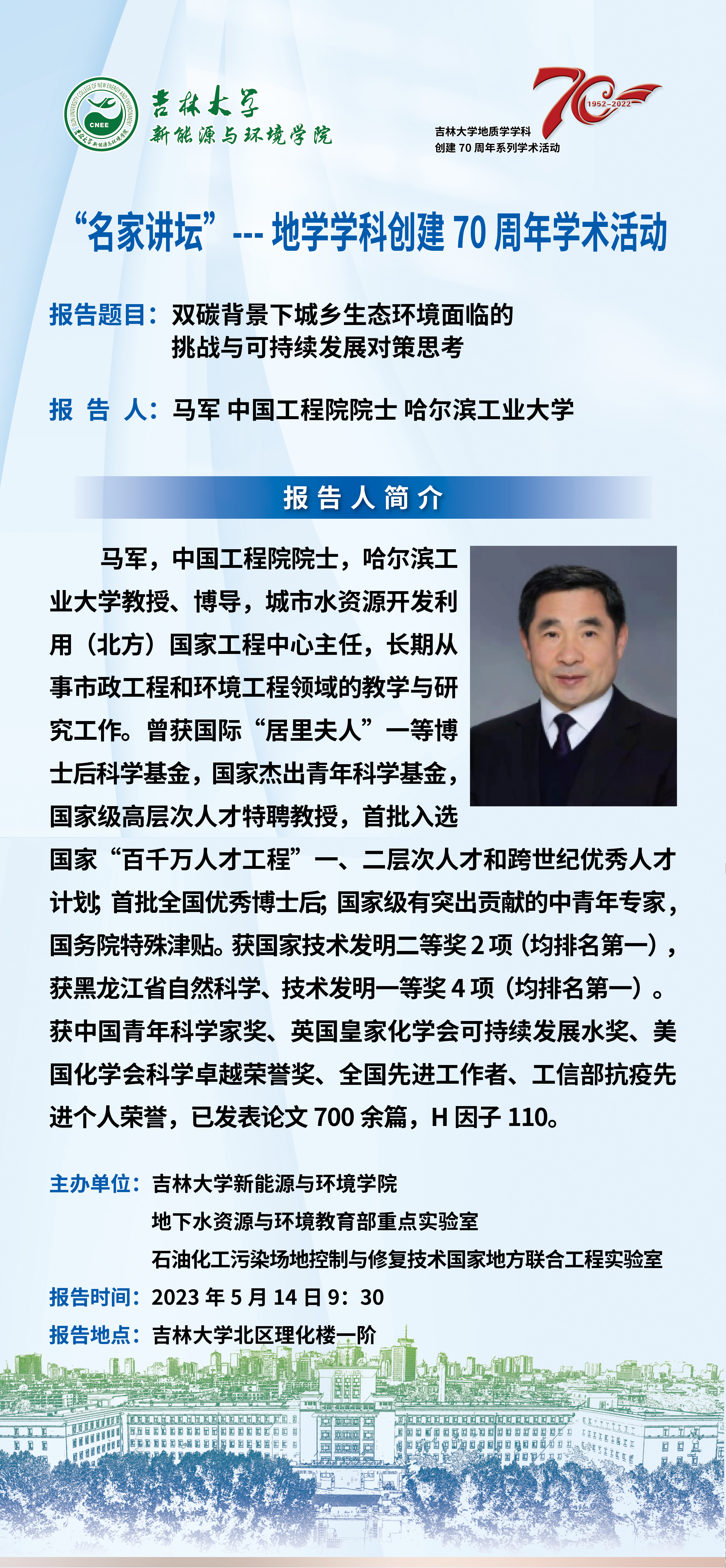 地学学科70周年丨无码流出 名家讲坛(202301)-马军院士讲座