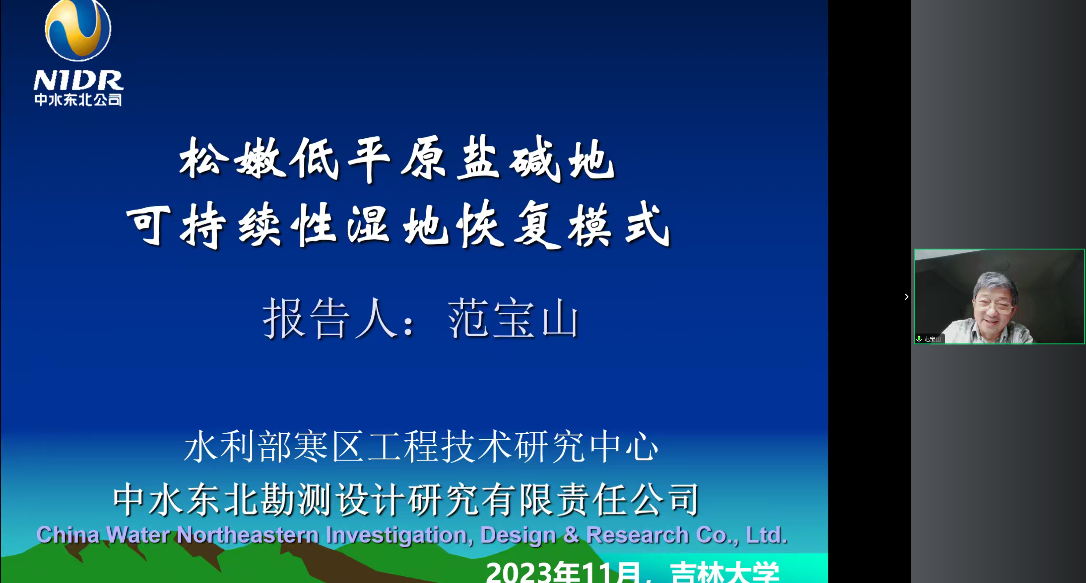 2023年11月23日,中水东北勘测设计研究有限责任公司科学研究院、水利部寒区工程技术研究中心原总工范宝山正高级工程师应邀,就“松嫩低平原盐碱地可持续性湿地恢复模式”这一主题进行了精彩的学术报告。报告会由无码流出