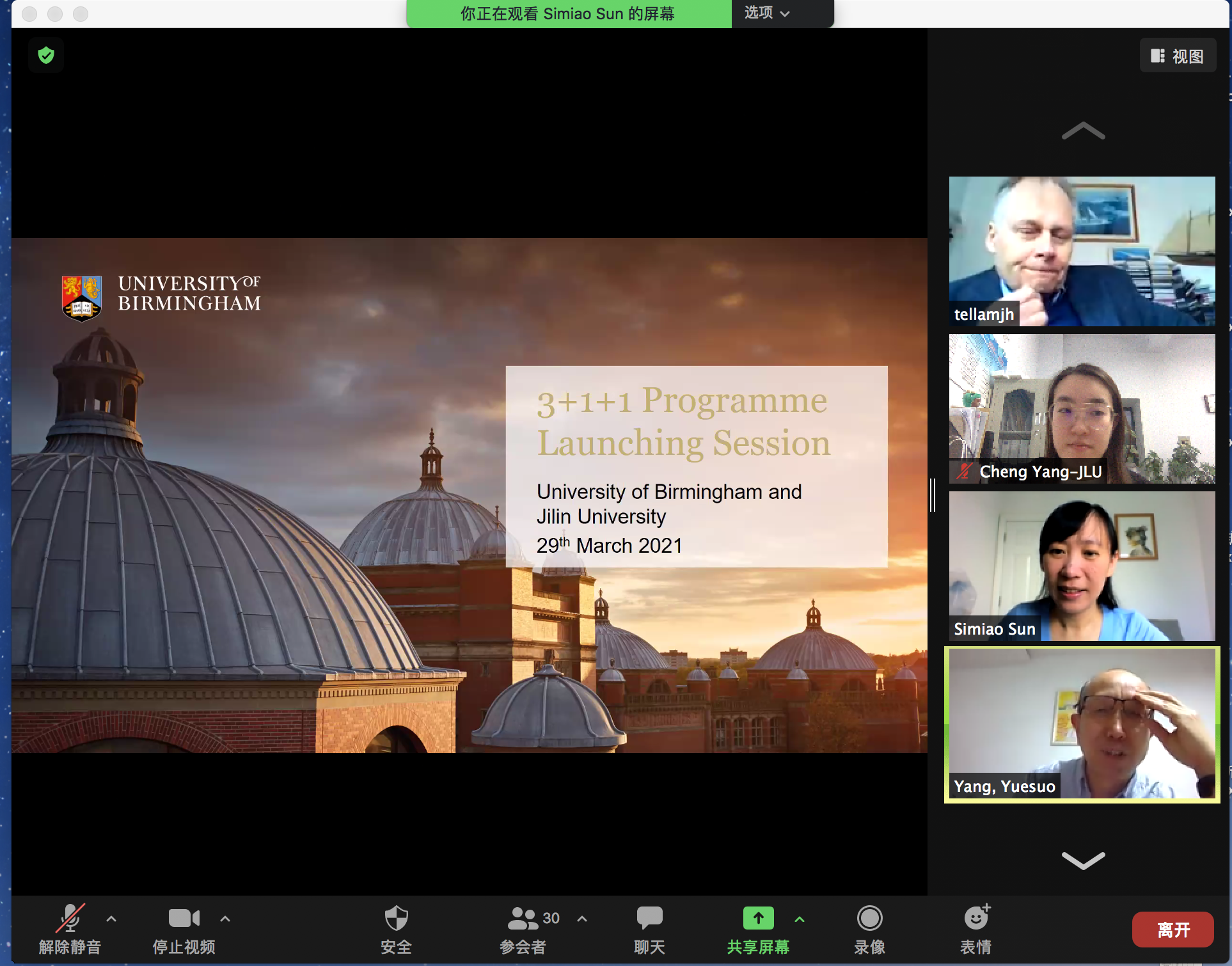主办了英国伯明翰大学“3+1+1”联合培养项目线上宣讲会,旨在对学院与伯明翰大学地理、地球与环境科学学院达成的“3+1+1”本硕联合培养项目进行宣传。伯明翰大学中国学院负责人妮娜·莫里斯女士、生命与环境科学学部硕士主管克里斯·布拉德利博士、地理、地球与环境科学学院水文地质专业负责人约翰•泰勒姆教授、学院国际事务副主任孙思淼博士参加了宣讲会并针对联合培养项目做了详细的介绍。学院外事副院长董军教授、地下水科学与工程系杨悦锁教授、和外事秘书杨珵老师参加了宣讲会,学院50余名本科生积极参与了本次线上宣讲会。
