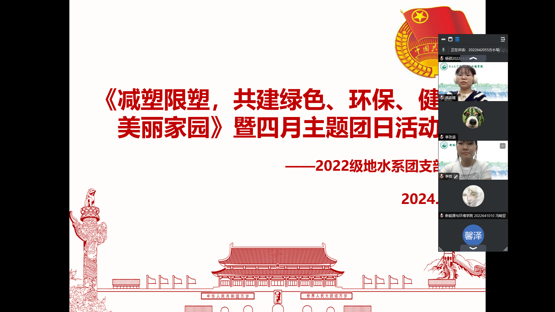 水利类专业2022级研究生团支部开展了“减塑限塑,共建绿色、环保、健康美丽家园”的主题团日活动。