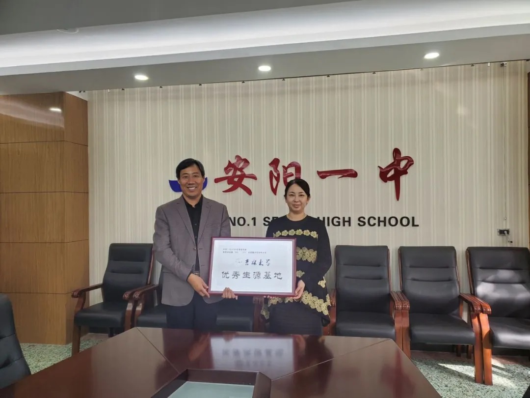吴哲老师和辛欣老师一行还前往安阳一中举行“优秀生源基地”授牌仪式。鞭策和鼓舞着安阳一中的学子们求实创新,励志图强,释放青春激情,追逐青春理想。