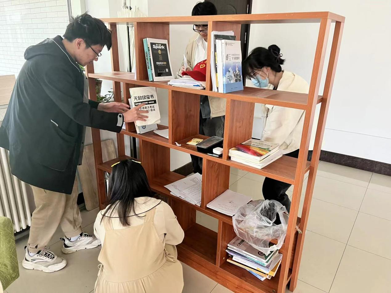 志愿者们在李四光教学楼对其图书角等公共区域进行清扫和整理,并将教学楼外的共享单车摆放整齐。活动过程中,志愿者们热情满满,干劲十足,全心全意投入到清扫工作之中,在大家的共同努力下,原本杂乱的图书角,单车停放点变得焕然一新。
