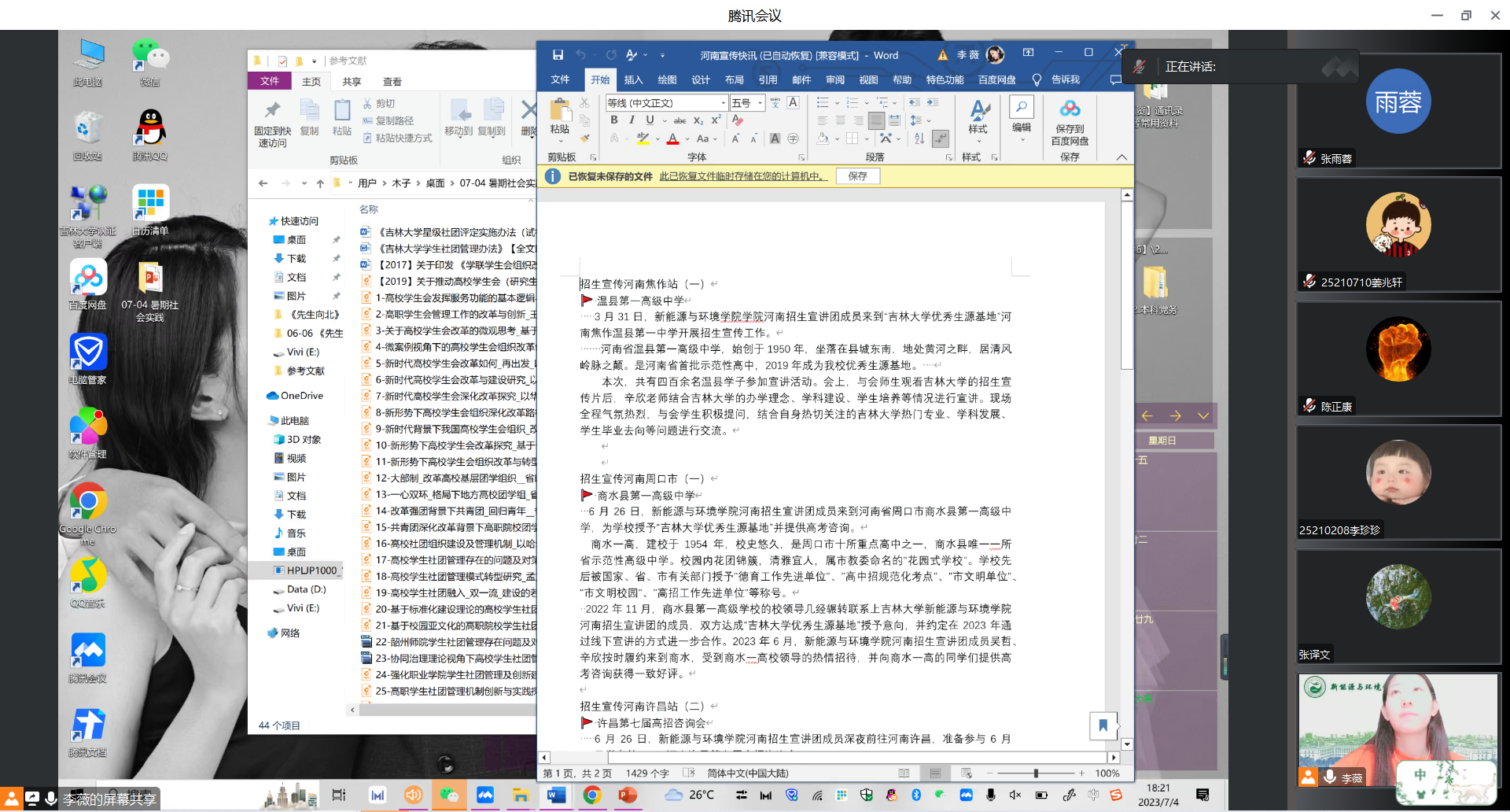 2023年7月4日学院召开2023年暑期社会实践活动动员大会,学院暑期社会实践团队、“返家乡”社会实践成员、“鼎新实习计划”成员参与会议,院团委负责人李薇老师担任主讲人为各位同学解答社会实践注意事项。