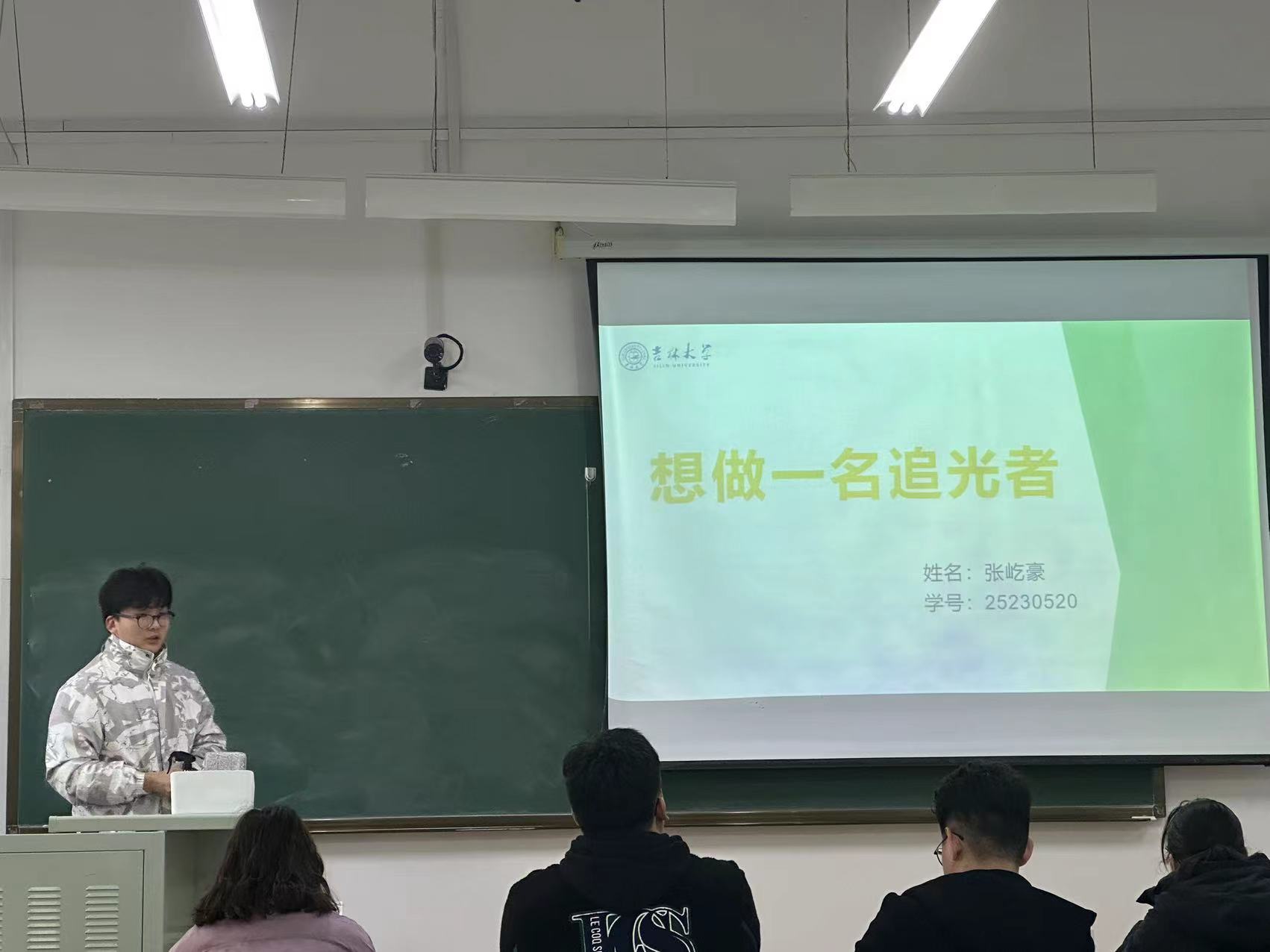 参选的同学们分别提交报名表,从个人优势、自我认知、未来展望等多个方面进行时长约为3分钟的自我介绍。学生们的个人介绍集专业理论和个人经历为一体,阐述对马克思主义的理解的同时,抒发了自己的感慨。在自我介绍之后,评委老师向各位竞选者提出了相应的问题,从多方面与竞选同学进行交流,并给予了宝贵的建议。