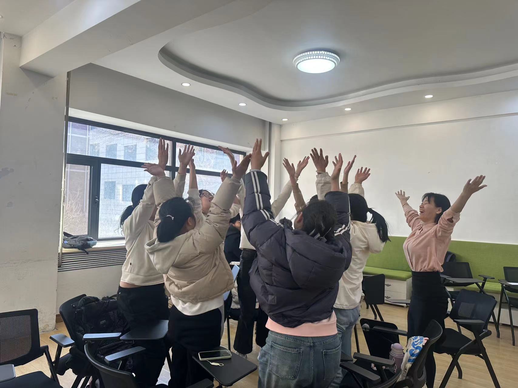 (四)最后,各个小组分别派出组内成员在大家面前表演。同学们通过演绎宣泄烦恼、释放压力,精彩的表演将本次活动推向高潮。表演完成后各组之间的同学也积极分享了自己处理相似烦恼的方法。
