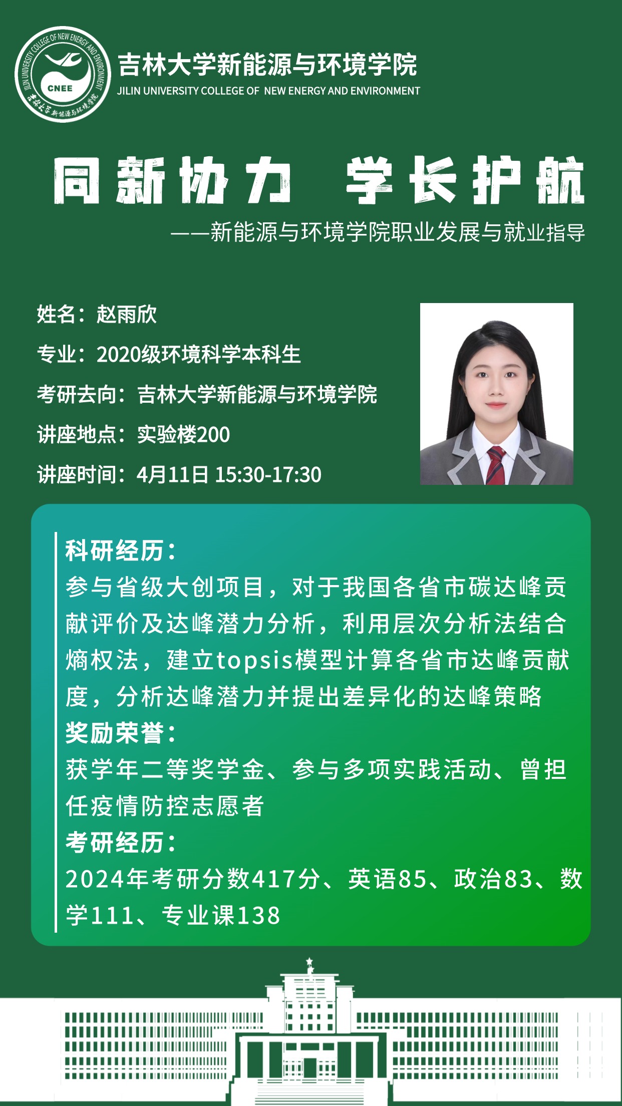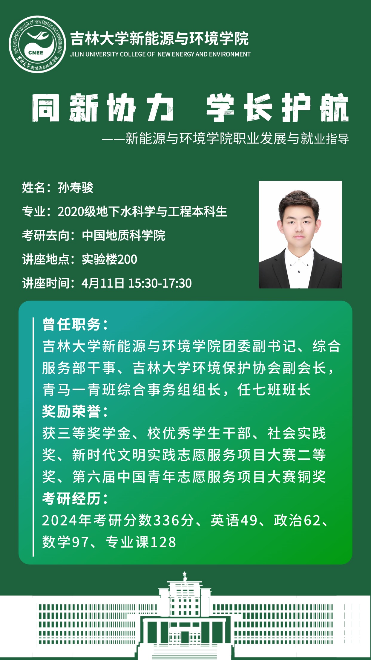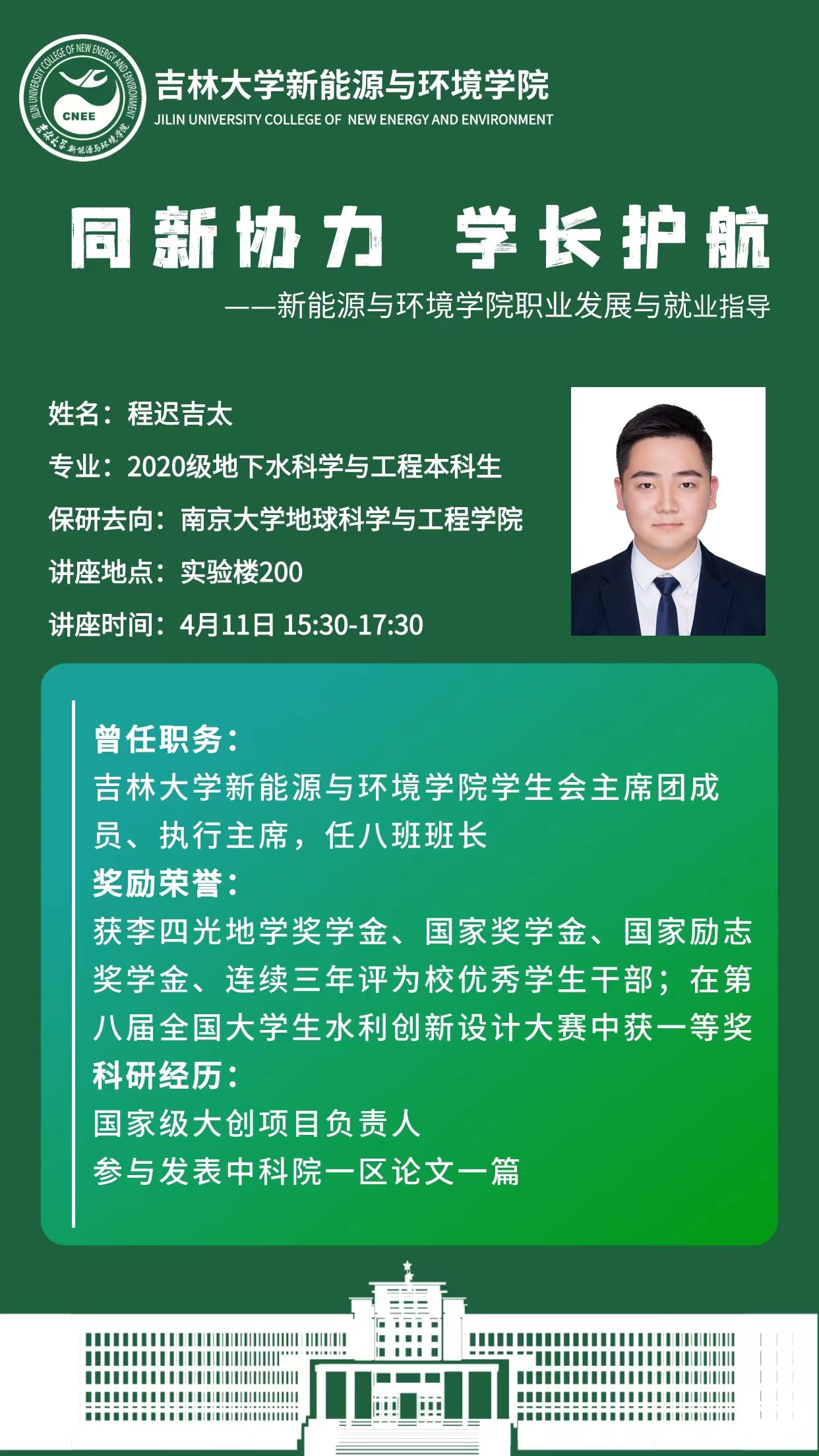 本次活动主讲人为四名2024年优秀应届毕业生。水文与水资源工作专业韩采奕同学在2024年黑龙江省定向选调考试中笔试、面试均列第一,成功上岸黑龙江省大庆市水务局;地下水科学与工程专业程迟吉太,于2023年成功推免至南京大学地球科学与工程学院;环境科学专业赵雨欣2024考研分数417分,为无码流出