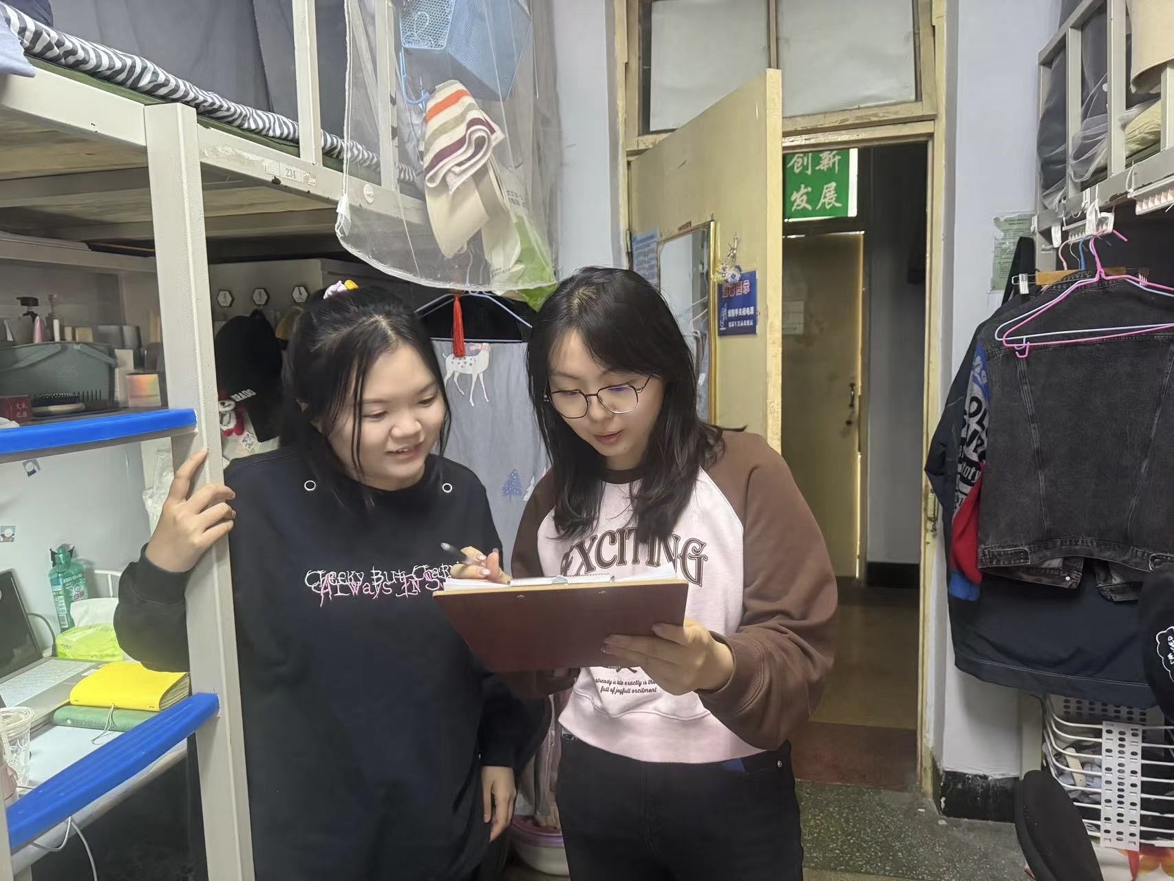4月15日,2023级辅导员姜岳彤老师进入中心校区南苑二公寓21间寝室,对同学们近期学习状态,转专业学生的适应程度进行了解,并提醒同学们注意寝室卫生。同日,姜老师又深入环境类《分析化学》课堂,同任课教师了解教学进度及学生学习情况,本次课程118人全部按时到课。