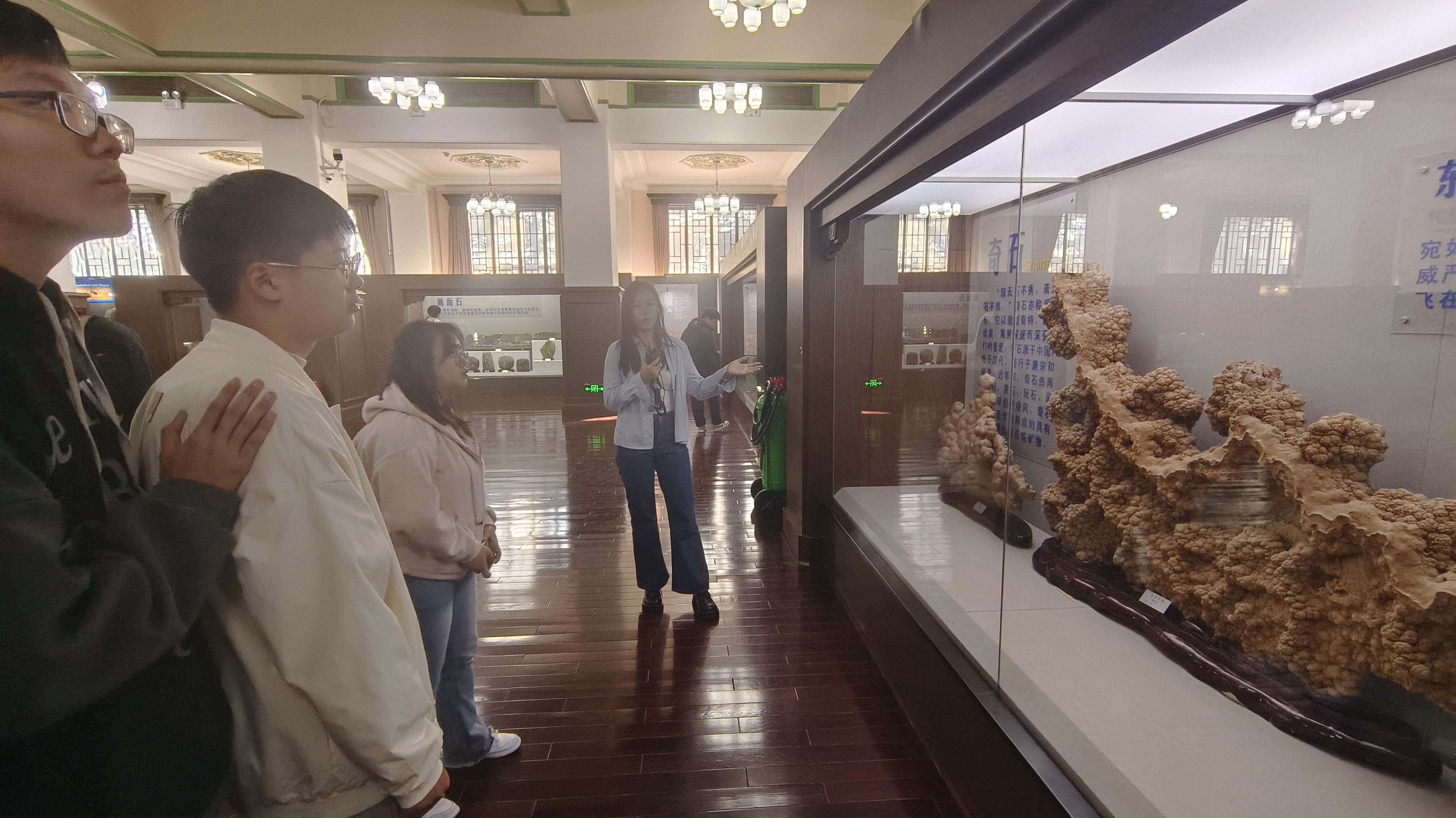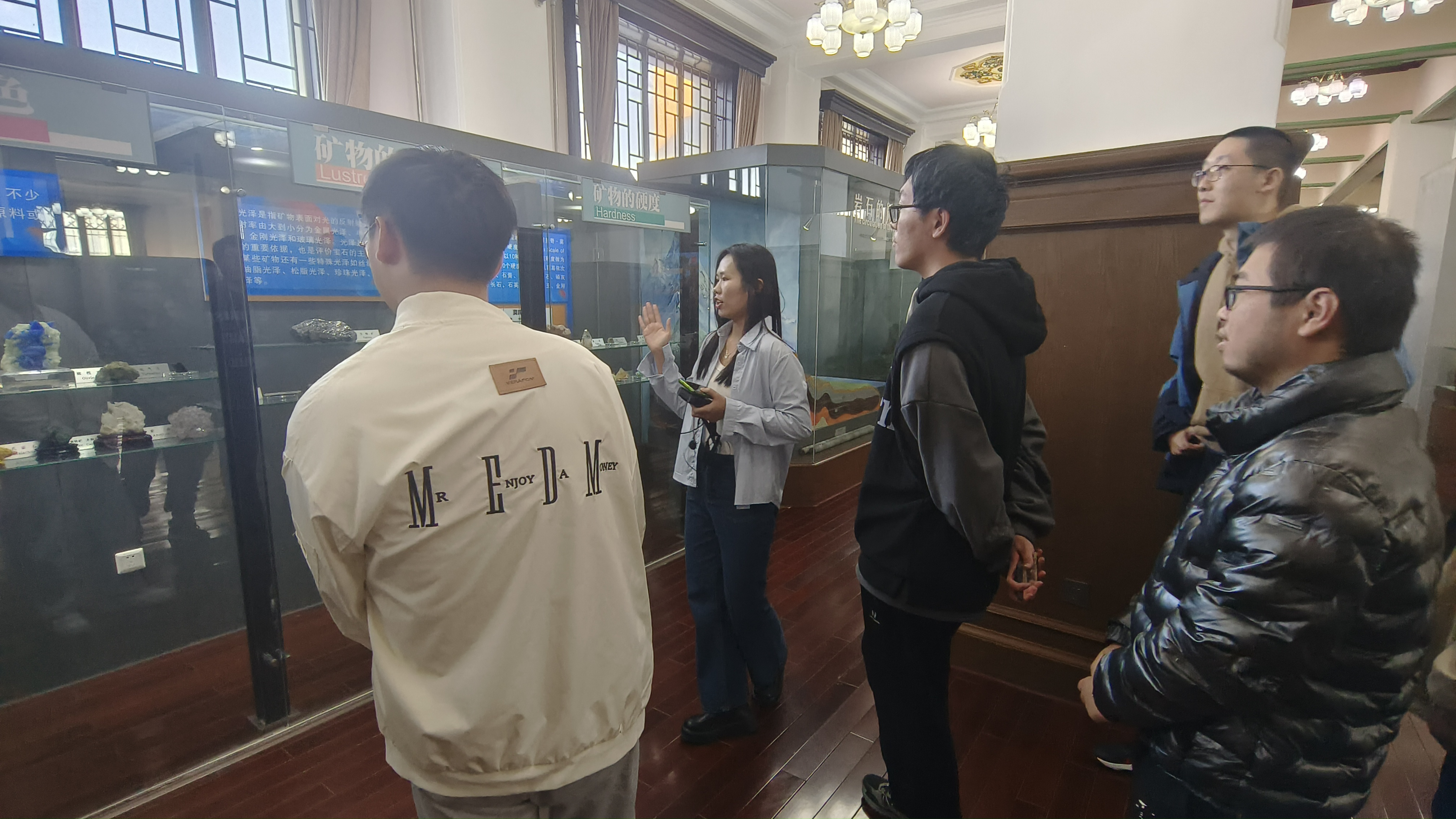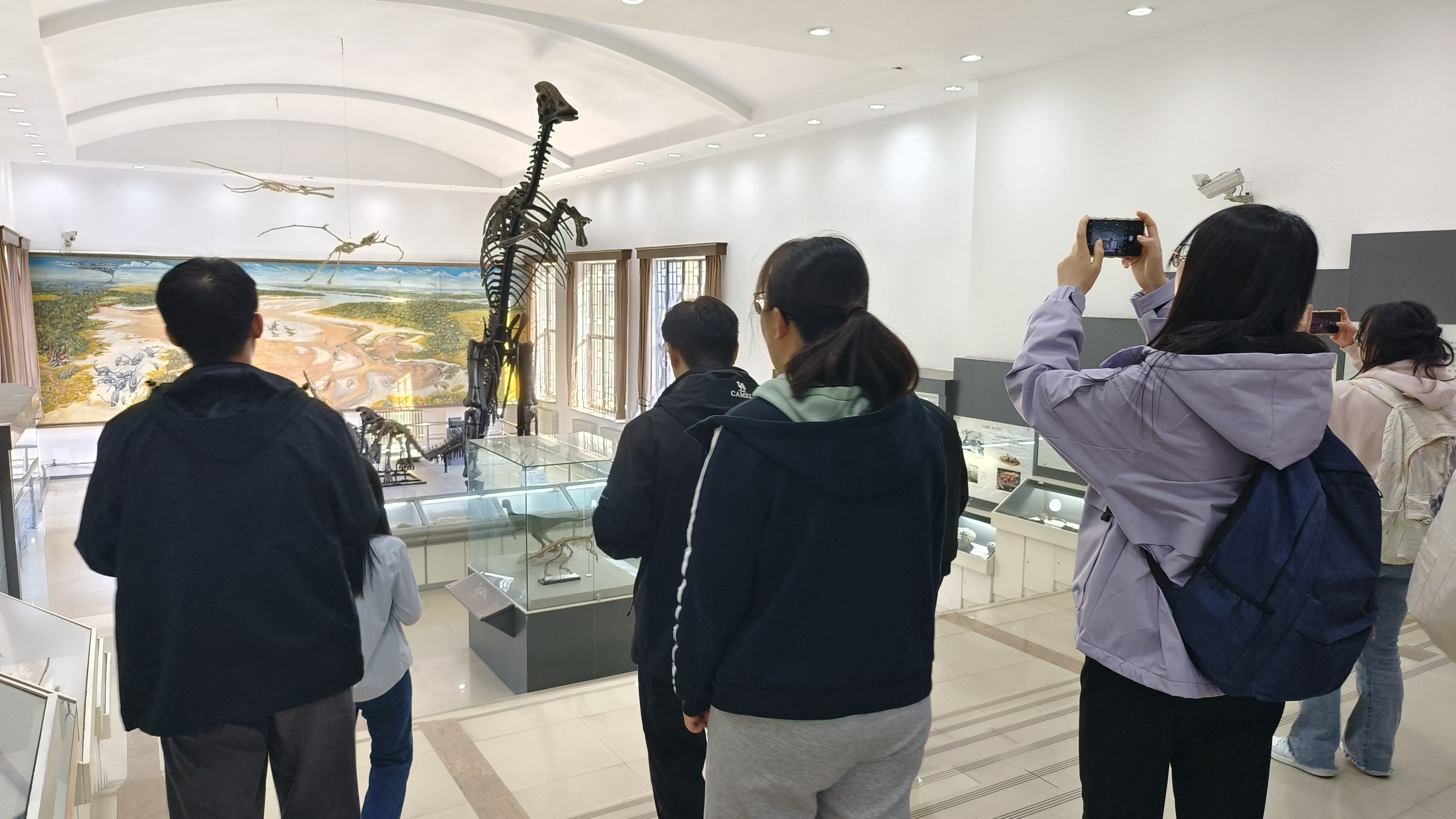 在展馆讲解员老师的带领下,党员同志们依次参观了博物馆内的地球奥秘厅、生命起源与进化厅、矿产资源厅、奇石宝玉石厅、恐龙厅五个展厅。沧海桑田的地质变迁造就了无数宝贵的地质财富。展馆中独特神奇生物标本、精美珍贵矿产石资源不仅记录了无数生命印迹,诉说着漫长地球历史,更让同志们切实感受到展现自然鬼斧神工的魅力。除此之外,展馆处处体现着现代科学的先进技术,让展览更具生动趣味,为大家带来一场视觉盛宴。参观过程中,党员同志们一路聆听讲解员老师详细介绍,对自己感兴趣的内容详细观察、拍照记录。其中,恐龙厅高大挺拔的嘉荫卡龙化石骨架大家最感兴趣,珍贵的恐龙化石不仅是几千年前的珍贵文物,更是我们探索地球奥秘的重要信息。