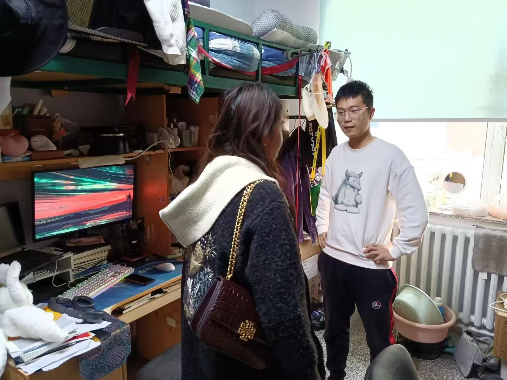 11月7日,2022级辅导员母茂松老师进入《环境统计学》课堂,检查学生出席情况,并与任课教师沟通学生日常教学出勤情况。本次课程共计2人迟到,无缺勤情况。11月10日,母老师进入中心校区南苑一公寓、南苑二公寓,检查寝室卫生情况,并询问近期供暖情况,提醒学生注意防寒保暖。
