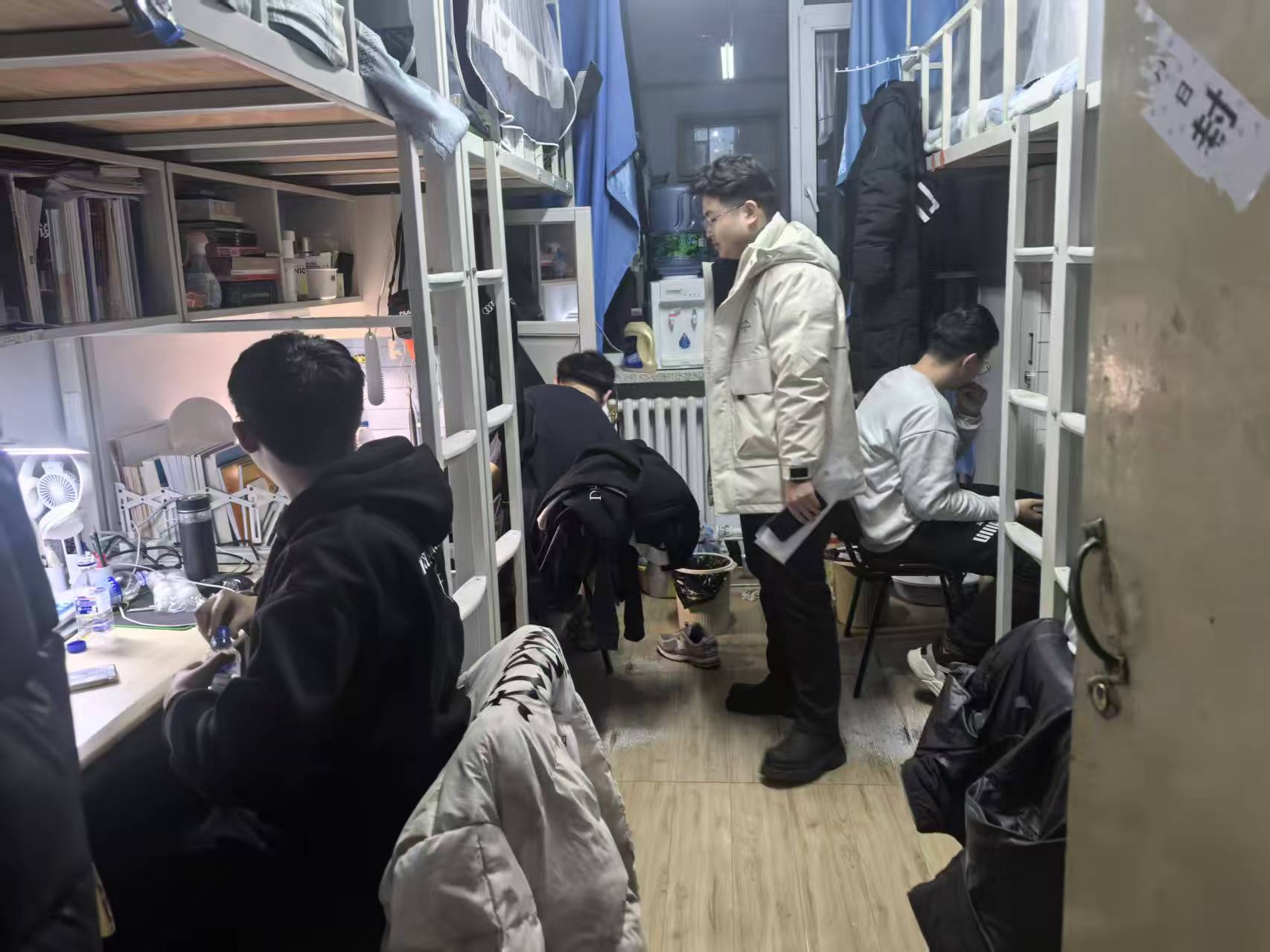 2月24日,2021级辅导员李薇老师进入朝阳五公寓、朝阳七公寓学生对学生考研初试情况进行摸排,对寝室卫生、消防安全进行检查。