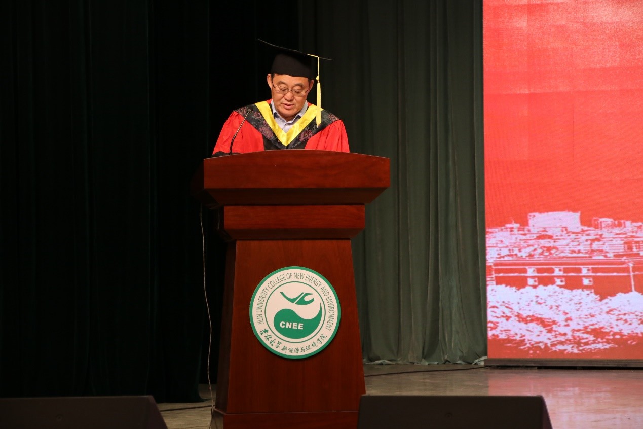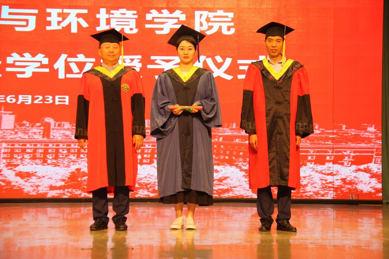 院长许天福、党委书记汪祥松,学术委员会主任赵勇胜,教学委员会主任董德明,副院长花修艺,副院长卞建民,副院长董军,副院长徐军,党委副书记兼副院长吴哲,党委副书记温卓,环境科学系主任王宪恩,地下水科学与工程系主任杜新强以及毕业班主任、教师代表与全体2021届毕业生共同见证这一神圣的时刻。典礼由学院党委副书记兼副院长吴哲主持。