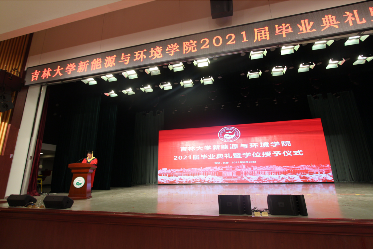 毕业本科生代表李春瑞发言,他表示会深刻铭记母校所教会的求实创新、励志图强的精神,铭记身为地学人的果敢坚毅、顽强拼搏。不论走到哪里,都会在未来的人生中,创造属于自己的价值,用实际行动讲好吉大故事,传承吉大精神!
