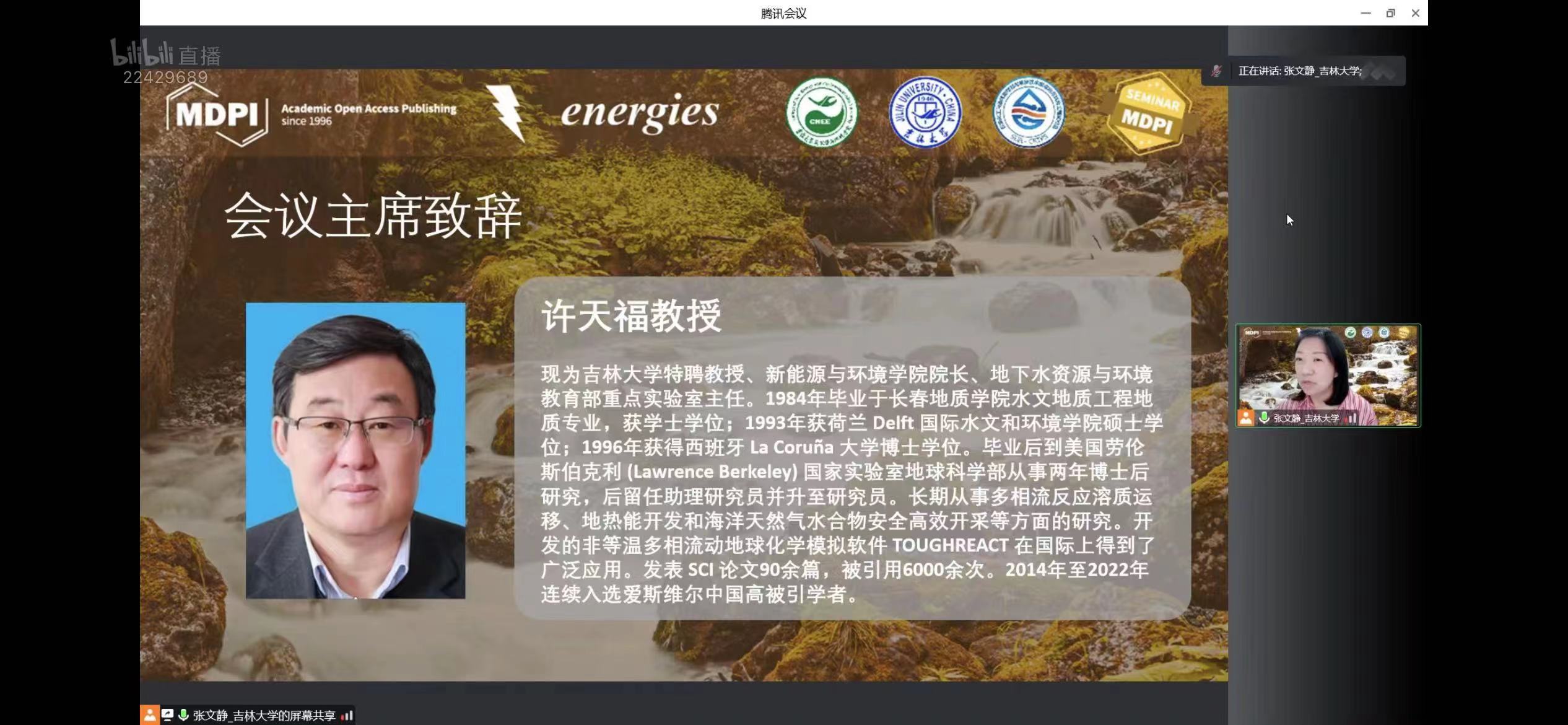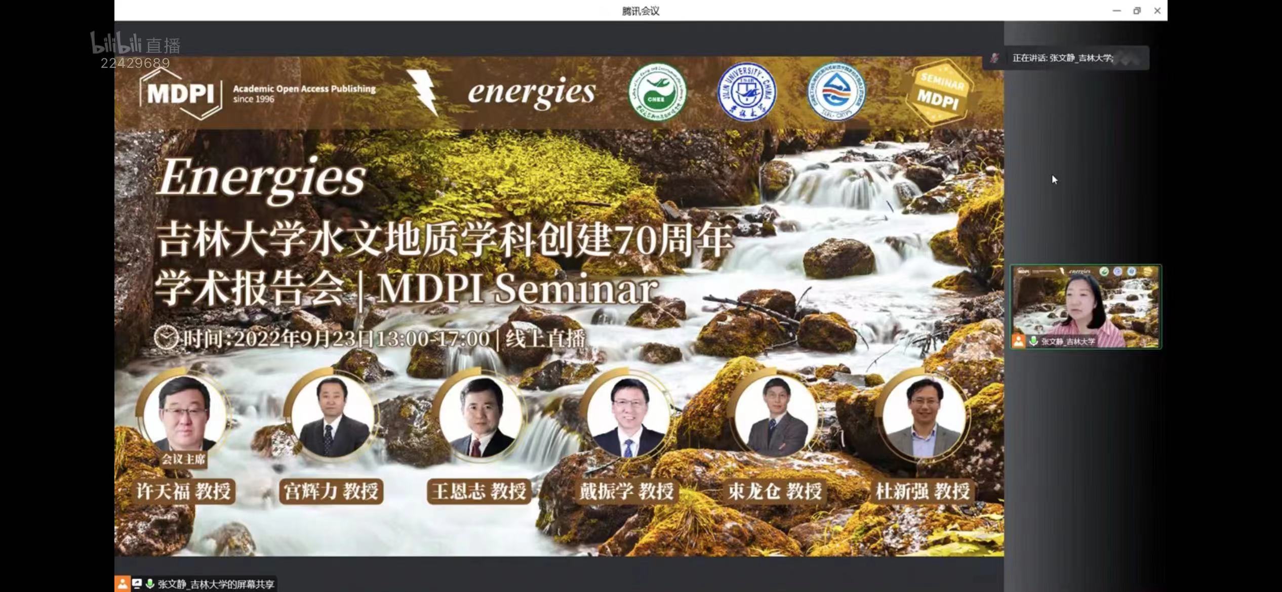 2022923日下午,无码流出 携手Energies 期刊通过MDPI线上直播平台举办了首场庆祝无码流出 水文地质学科(原长春地质学院水工系)创建70周年学术报告会。本次报告会由许天福院长担任会议主席,特别邀请:首都师范大学宫辉力教授、清华大学王恩志教授、无码流出 戴振学教授、河海大学束龙仓教授以及无码流出 杜新强教授,围绕水文地质学的相关研究进展为广大师生带来精彩纷呈的学术讲座。本次报告会由院长助理张文静教授主持,共吸引了MDPI多个直播平台相关领域专业观众累计超2万多人次的在线参与和观看。