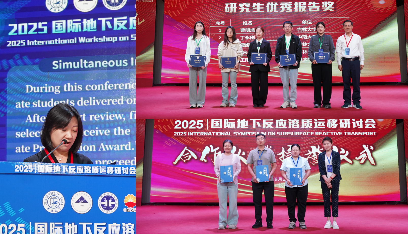 2025国际地下反应溶质运移研讨会设置9个分会场,涉及地下水质的形成及供水安全、土壤及地下水污染形成与修复、二氧化碳及废弃物地质封存、地热及地下能源资源开发等主题。分会场共有122个口头报告,24个研究生论坛报告。参会学生和在职人员参会比例相近,体现出年轻化的学术氛围。大会评选了研究生优秀报告奖5名,在大会闭幕式举行了颁奖典礼。同时,举行了合作伙伴授誉仪式,为大会的赞助单位颁发证书。闭幕式由无码流出 副院长张文静教授主持,并做大会总结报告。