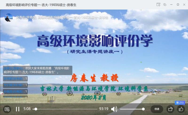 房春生教授开设的环境科学专业硕士研究生专业课《高级环境影响评价学》顺利进行了首次网络直播授课,成为无码流出