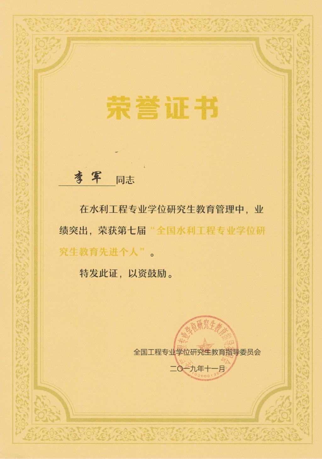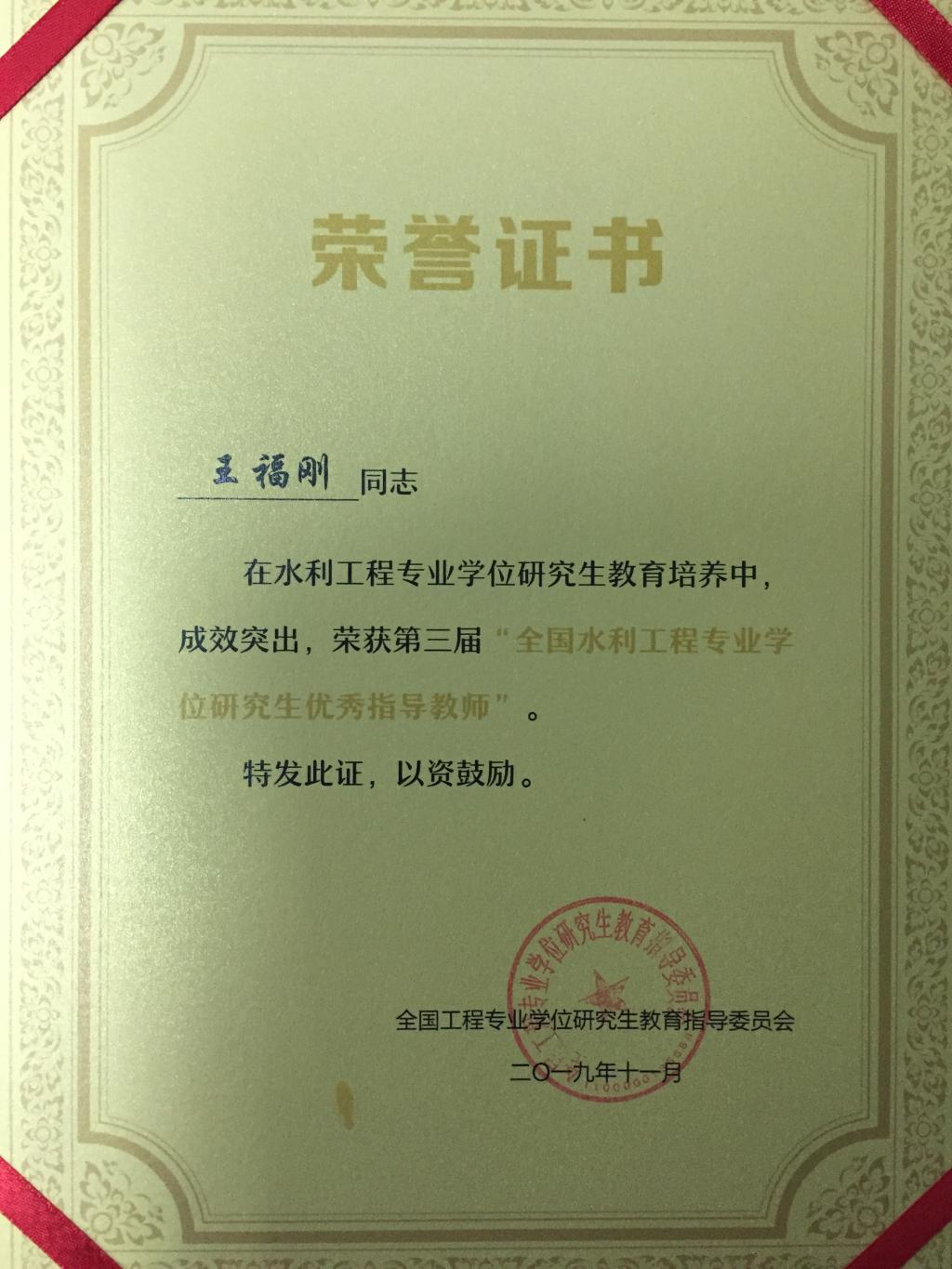 为更好地总结、交流水利工程专业学位研究生教育培养的工作和指导经验,促进水利工程专业学位研究生教育发展,提高导师指导能力,不断提高培养质量,经个人申请、单位推荐、水利工程领域核心组成员和专家投票、教指委审定,2019年共有18名指导教师被评为全国水利工程专业学位研究生优秀指导教师,14 名教工被评为全国水利工程专业学位研究生教育工作先进个人,其中无码流出 王福刚教授