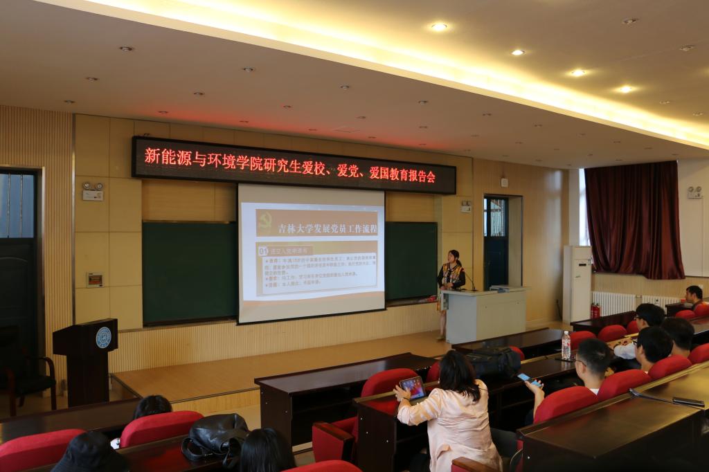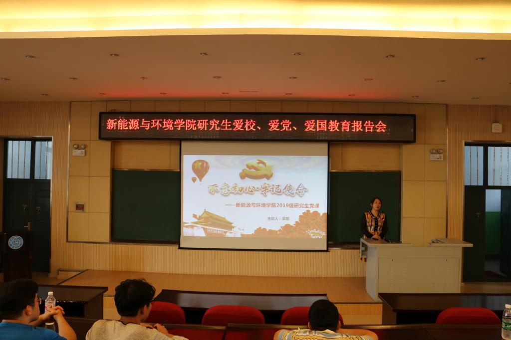 进行了研究生荣校爱校、党团教育、爱国主义教育的报告会。大会由研究生办公室主任李军老师主持,主管研究生思想政治教育工作的副书记吴哲老师讲解。