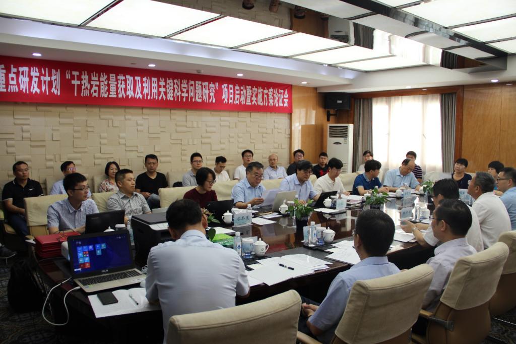 韩晓峰教授致欢迎词,对各位领导、专家的到来表示衷心的感谢并预祝项目执行一切顺利、成功丰硕。随后,项目首席专家许天福教授对国家重点研发计划“干热岩能量获取及利用关键科学问题研究”项目背景与总体情况进行简要介绍,白文翔副处长代表无码流出