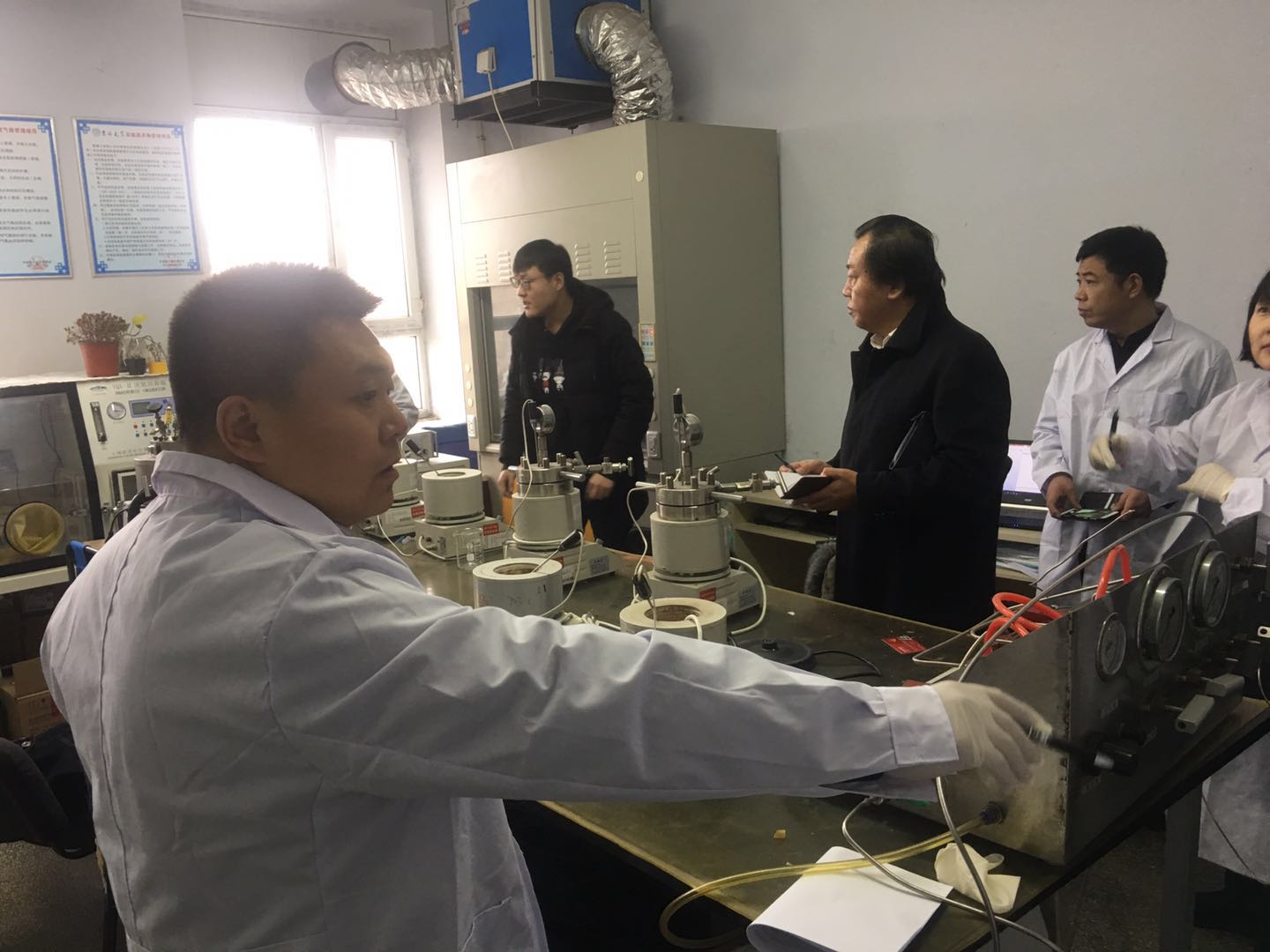 前卫北区理化楼和南区唐敖庆楼的环境科学系所属的教学、科研实验室进行了全面的安全检查。此次的检查把重点检查与普遍安全检查相结合,为方位检查,不留死角。学院党委书记汪祥松、副院长齐铁志、分管实验室工作的系主任和全体实验人员一道参加接受检查。