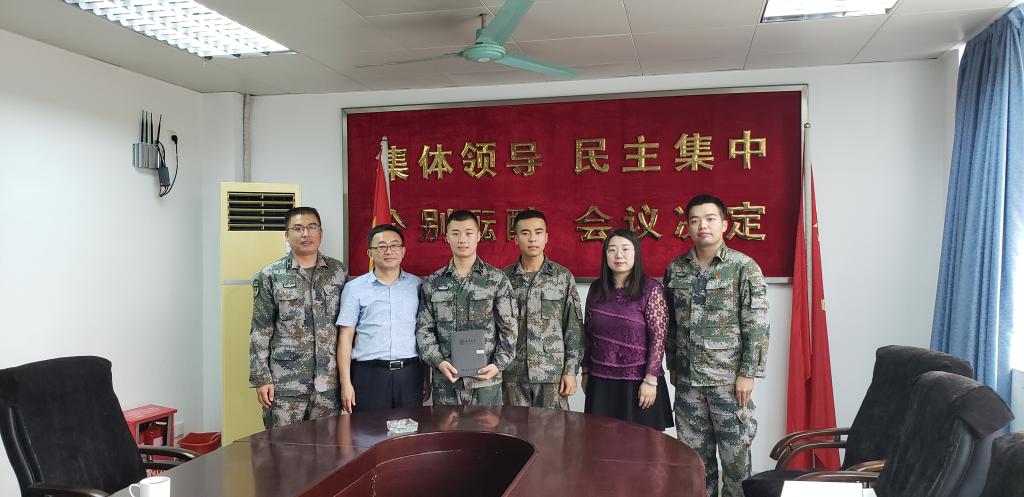 一行表示热烈欢迎,对学校专程走访慰问学生士兵表示诚挚感谢。座谈会上,入伍学生分别结合自身实际,汇报了一年的军营生活给身体素质、意志品格、业务水平等方面带来的变化和深刻体会。指导员则介绍了服役学生思想政治、日常训练、业务学习和生活情况,对学校为部队输送知识层次高、综合能力强、战斗作风硬的大学生士兵表示赞赏。