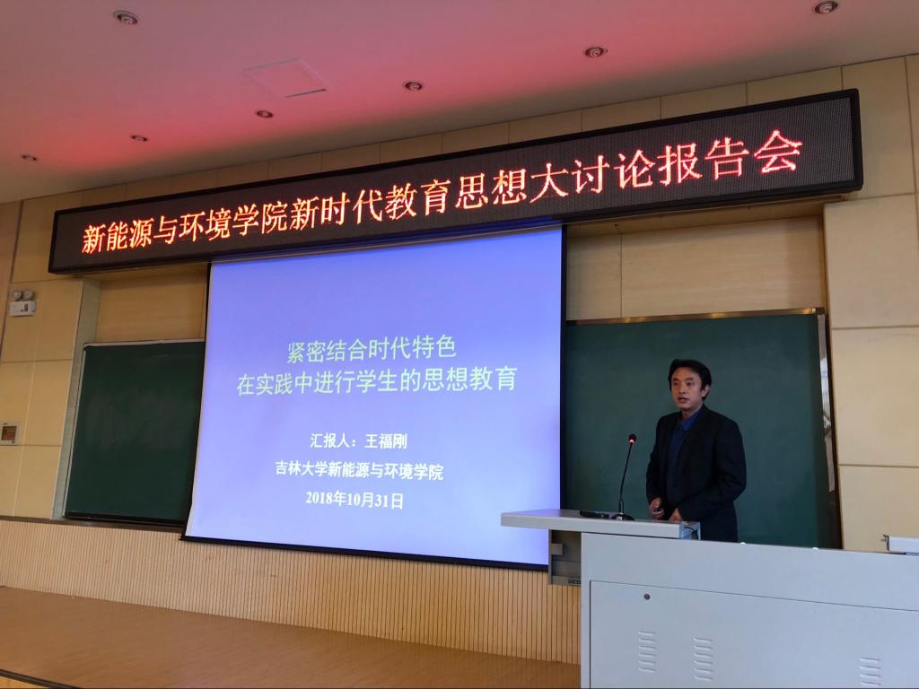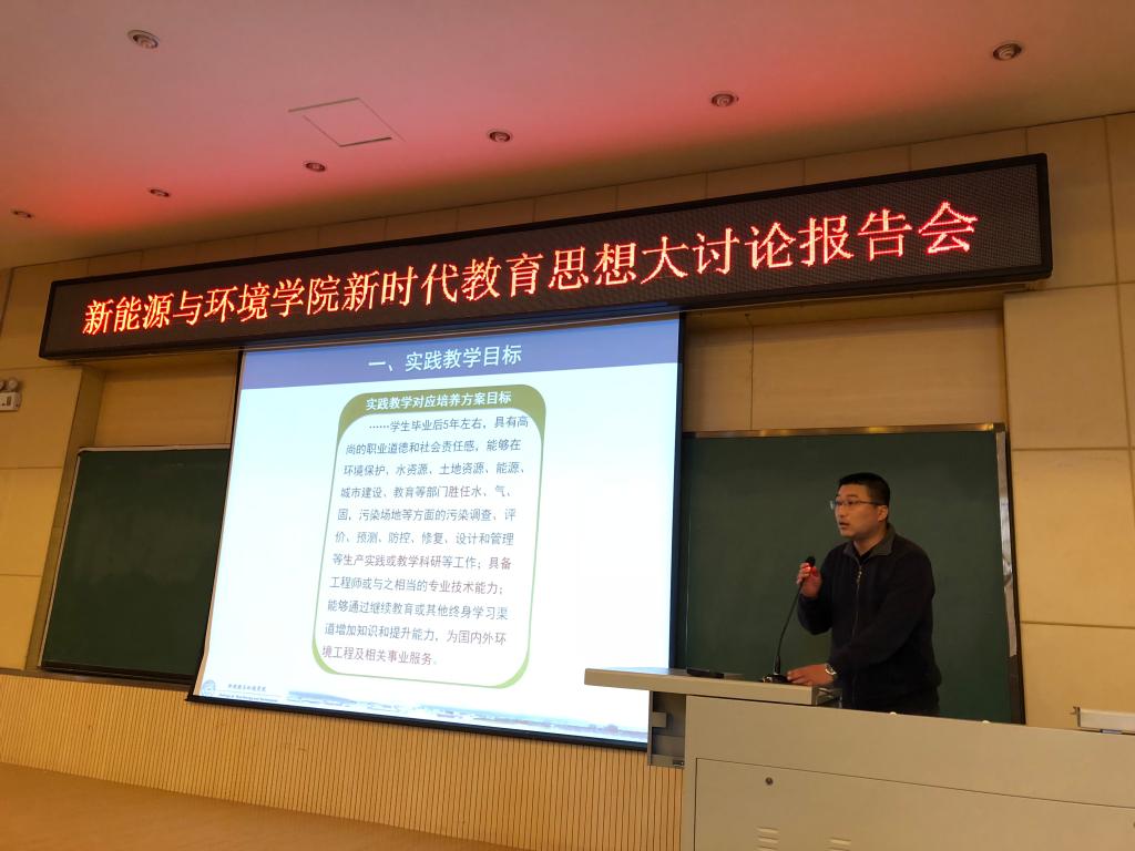 在北区理化楼第一阶梯教室召开了本学期首次新时代教育思想大讨论报告会。学院班子成员、学院教学委员会委员和全体教职员工出席讨论会。报告会由教学副院长卞建民主持。