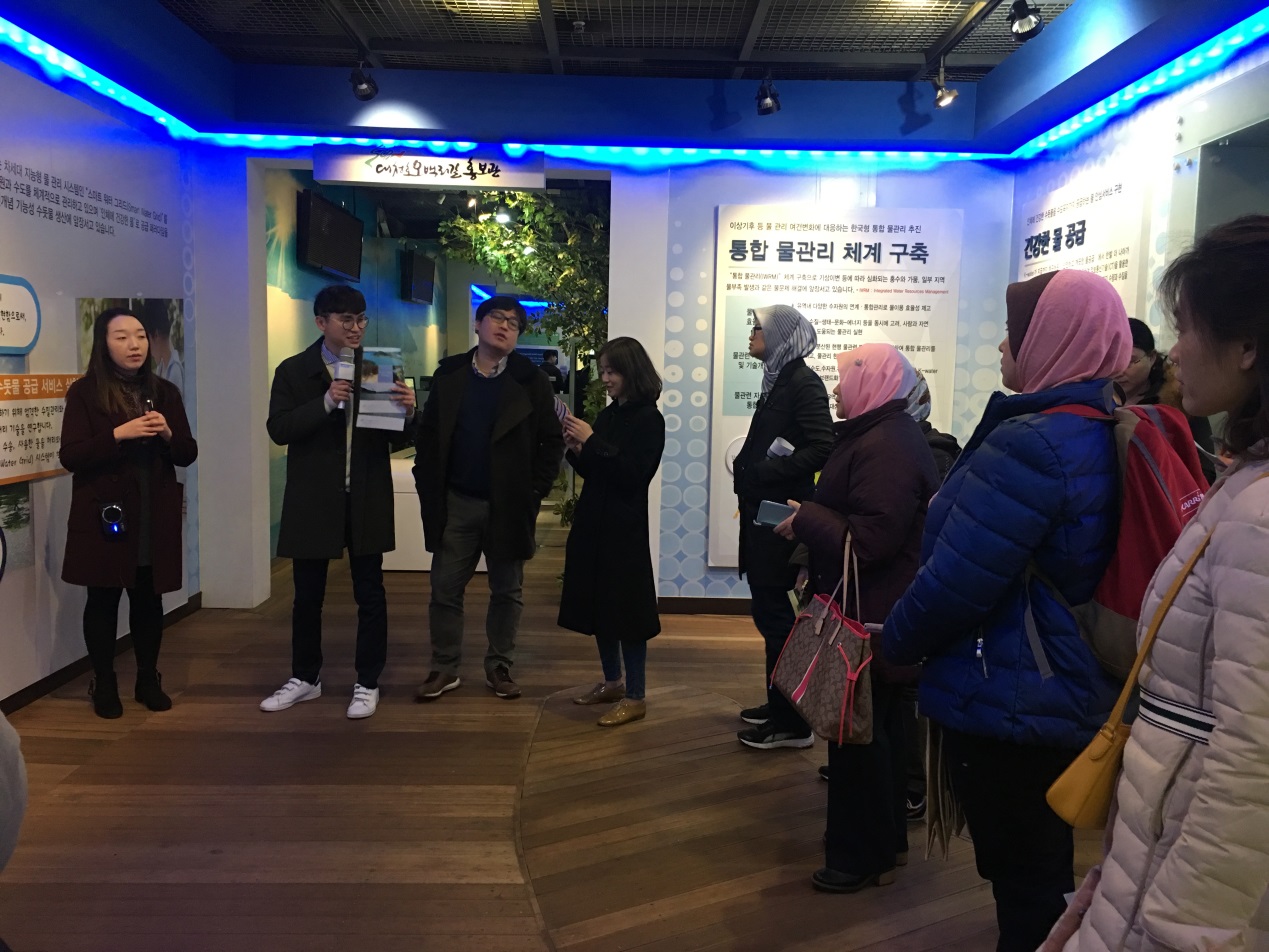 会后会务组安排参会专家及研究生进行了韩国水利研究机构调研和水利工程参观考察。参观考察了韩国权威水利科研和管理机构K-water,考察体验了韩国智能水务信息采集、大数据并行处理、水安全保障和应急决策过程,以及如何日常运行和维护等现代智能化运行和管理;实地参观了位于大田市周边的韩国最大供水、发电和防洪等综合性水利工程(Daecheong Multi-purpose Dam),了解了韩国水利工程建设情况,并通过参观坝区景观及文化中心,详细了解了韩国水利工程的发展历程。