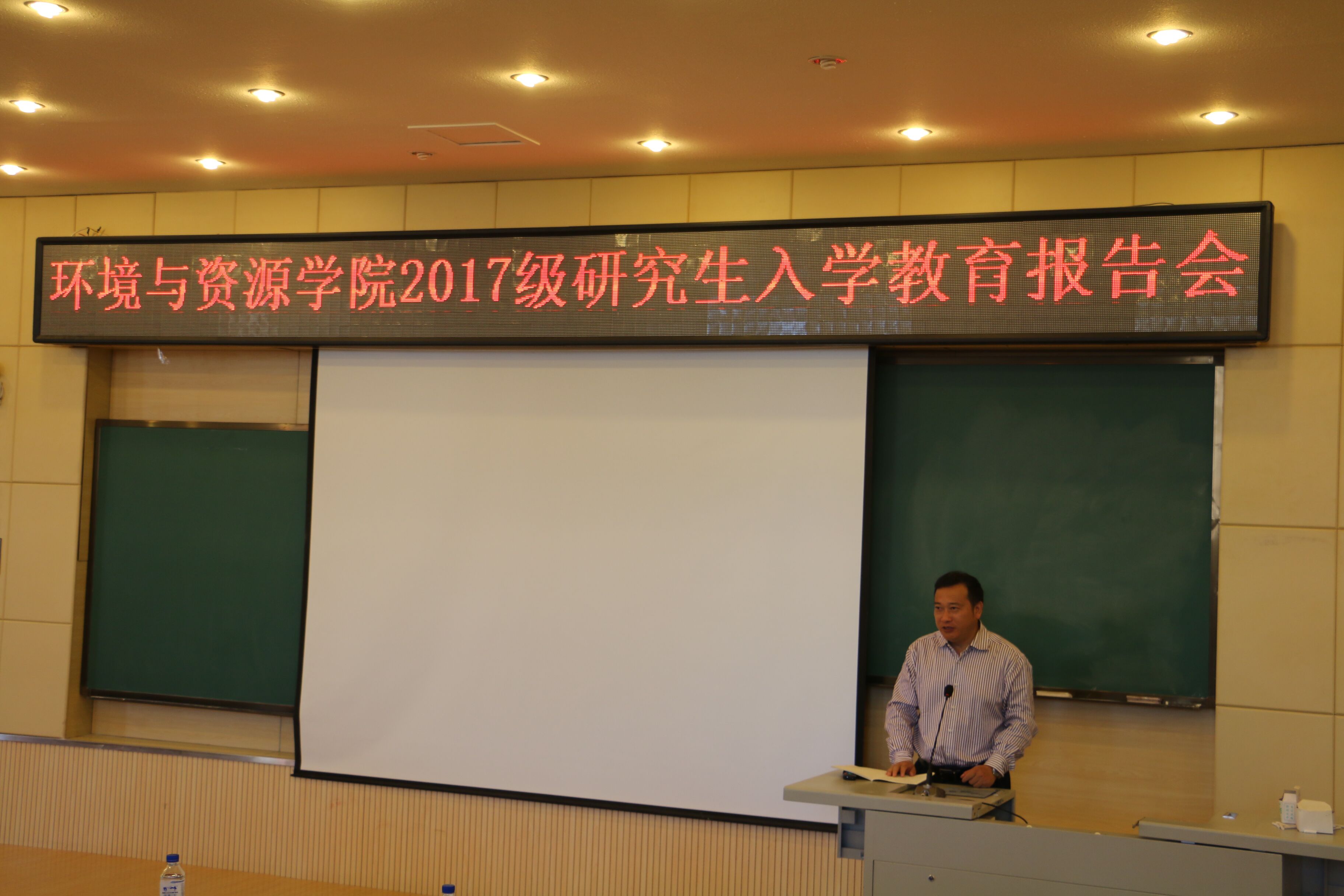 8月30日上午,环境与资源学院2017级研究生入学教育报告会在前卫北区理化楼一阶教室举行,报告会由花修艺副院长主持。