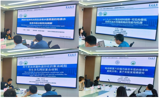 环境工程系副主任吕聪教授。本分会场探讨的学术方向涉及新能源电池、高级氧化技术、仿生多孔复合材料、纳米吸附、碳排放等多方面、多学科领域的内容,从实验研究、效果应用、发展趋势等方面进行了深入剖析。同时评委老师针对宣讲汇报中存在的问题提出了专业的指导意见及建议。精彩的学术报告和专业的点评激发了大家对科研的兴趣和热情,现场掌声阵阵。分论坛宣讲结束后,花修艺教授对参赛文章进行总结点评,对各位研究生的精彩汇报表示肯定,鼓励新一代年轻人勇敢追逐学术之路,并向关注出席本次论坛的师生表示感谢。曲蛟教授表示,听完同学们的汇报,他倍感欣慰,无论从ppt制作美化、研究内容等,还是汇报形式都别出心裁,对近年来研究生培养工作表示高度的肯定。张大奕教授做总结发言,他一直非常重视本系研究生培养,尤其对博士生的培养,对汇报的内容表示高度肯定,希望在未来的几年各位博士生能在环境领域有更深的造诣。