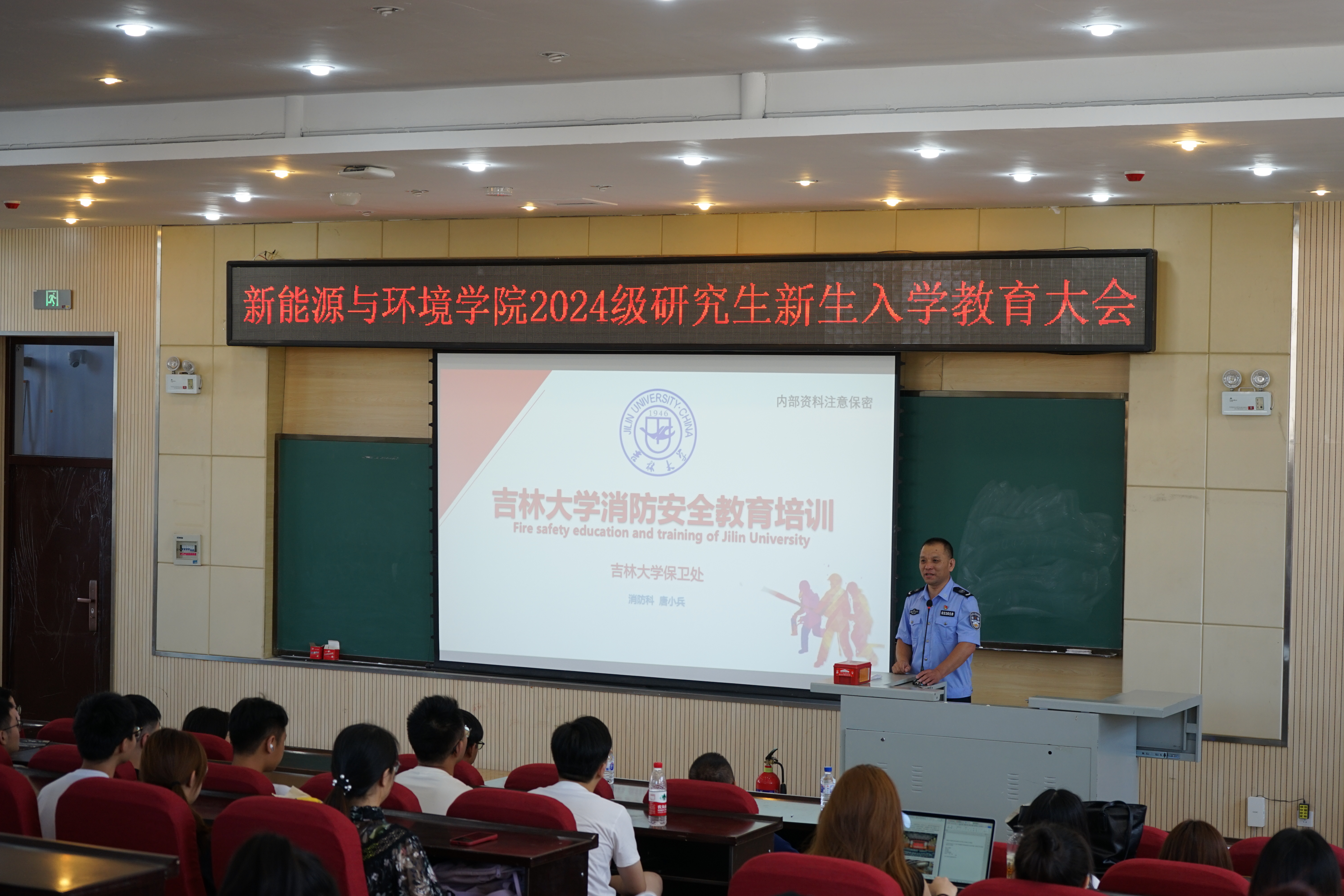 保卫处消防科科长唐小兵老师进行了消防安全教育培训,讲述了近几年高校发生的火灾实例,展示了两类常见灭火器的使用方法,提升了同学们的消防安全意识和消防安全技能。