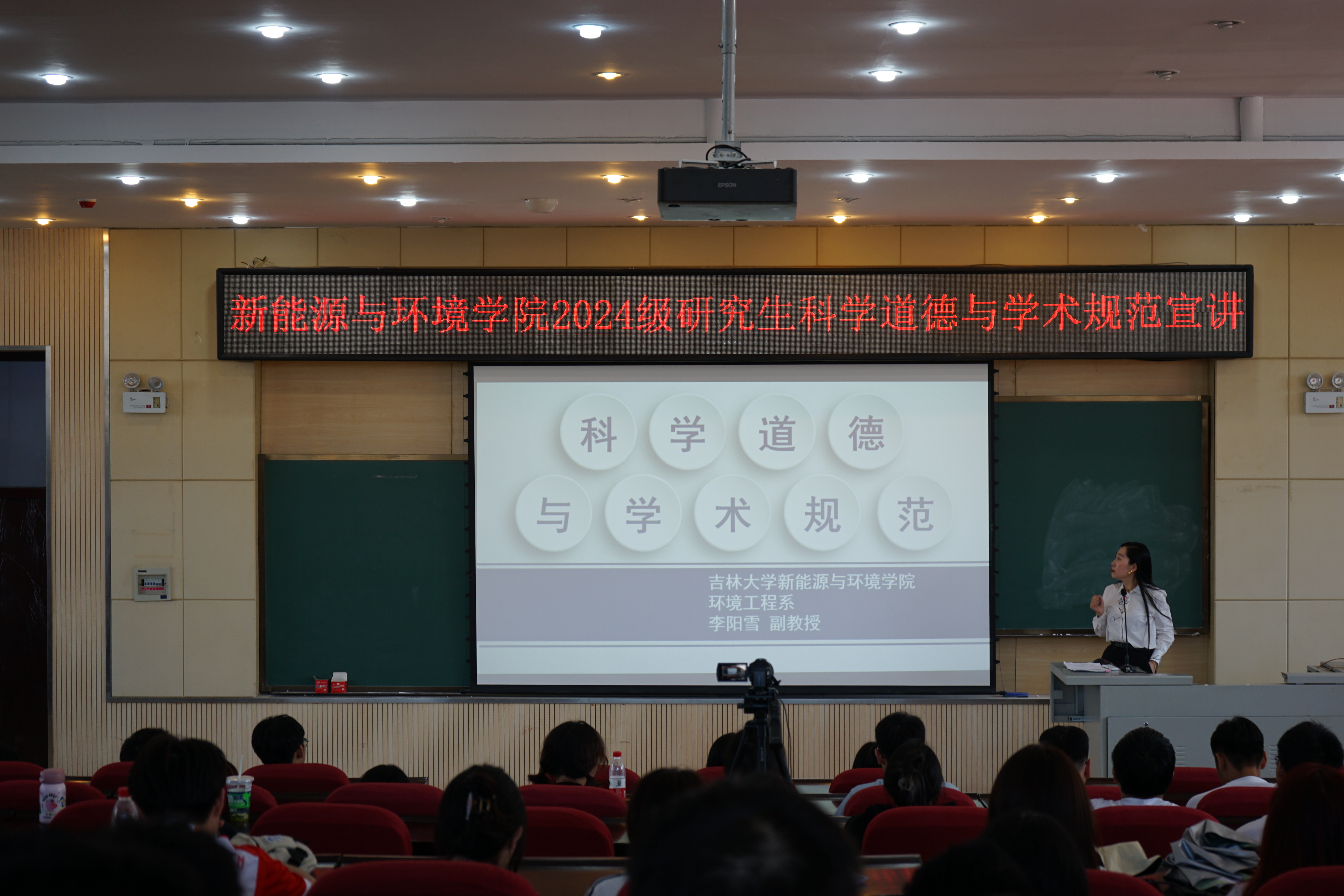 环境工程系李阳雪副教授为新生讲授了科学道德与学术规范报告,指导学生树立正确的科学道德与学术规范,引导学生建立诚信科研意识和高尚品德,希望同学们科研路上,乘风破浪,砥砺前行。