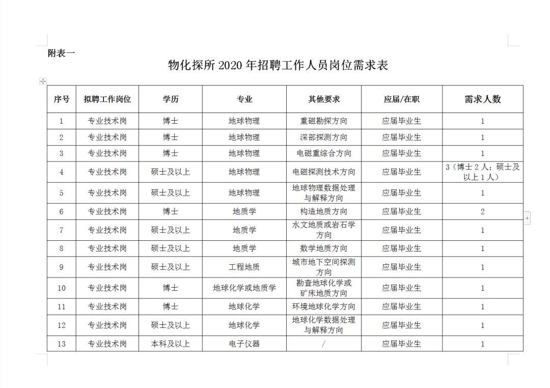工作岗位、学历要求和需要人数详见《2020年招聘工作人员岗位需求表》(附表一)。