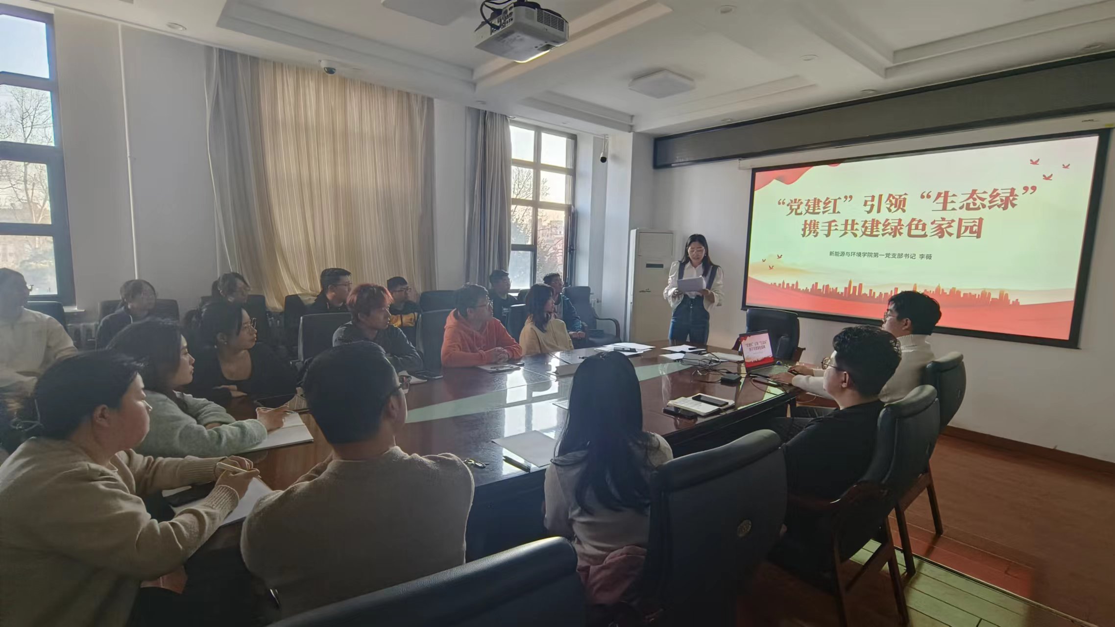 第十四届全国人大代表大会第二次会议开幕会上,国务院总理李强代表国务院作《2024年政府工作报告》,报告从7个方面进行了2023年的工作回顾,指出了2024年经济社会发展总体要求和政策取向,明确了2024年政府十项工作任务,全文涉及多处“生态文明建设”相关内容。活动中,李老师带领党员同志们共同研读了本次报告,强调了我党对强化生态环境保护治理提出的新要求新举措,重点讲述了2024年政府工作任务中“加强生态文明建设,推进绿色低碳发展”的相关内容。为了让同学们更直观的学习,李老师组织与会党员共同观看《生态文明,全球共赢》短片,进一步学习了解习近平生态文明思想精神深刻含义。2020年,习近平总书记在第七十五届联合国大会上对世界郑重承诺:“中国将提高国家自主贡献力度,采取更加有力的政策和措施,二氧化碳排放力争于2030年前达到峰值,努力争取2060年前实现碳中和。”为实现这一庄严承诺,向世界人民展现大国担当,全国人民在党中央的带领下,建设节能工程和低碳产业,深入开展污染防治攻坚战。