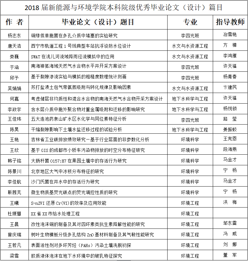 2018届无码流出 本科院级优秀毕业论文(设计)篇目