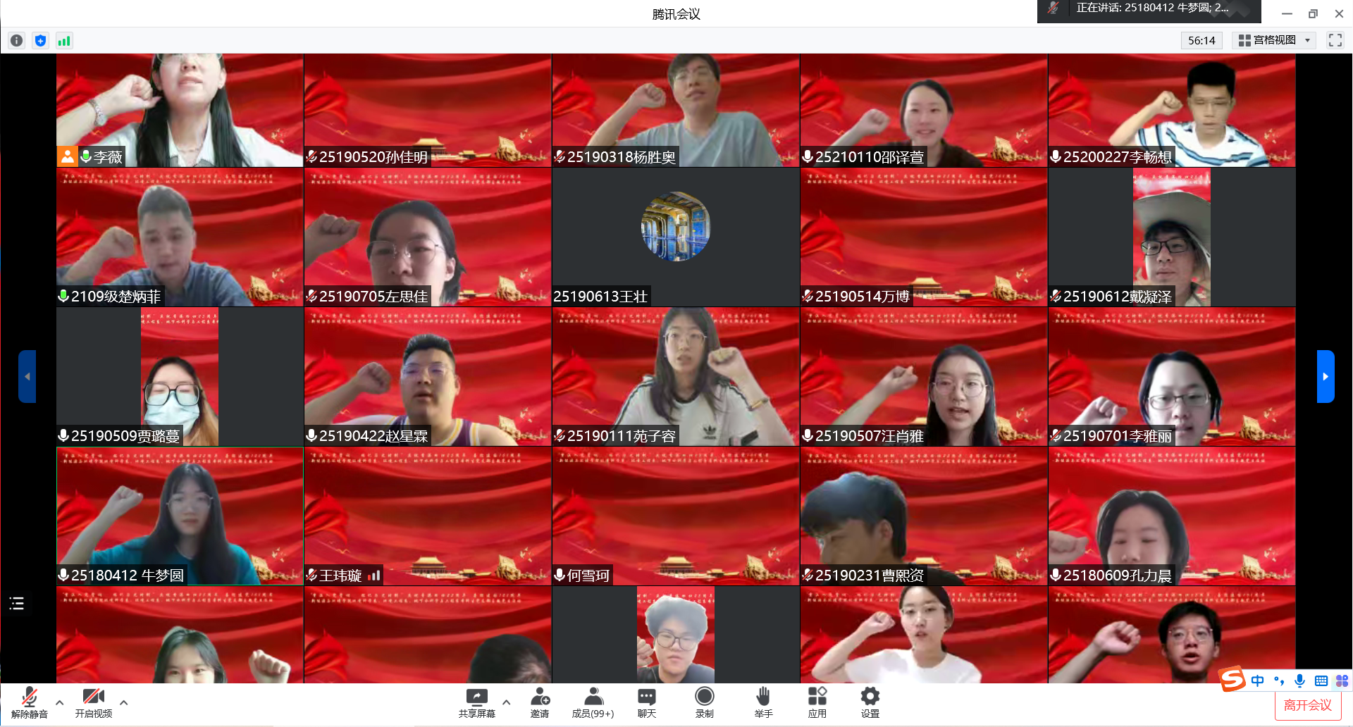 会后,学生们分享了自己的心得体会。入党积极分子贺群表示,我们生在红旗下,生于春风中,以青春之名,书写清澈挚爱,以心中红星献礼中国。人民有信仰,国家有力量,民族有希望,目光所至,皆为华夏,五星闪耀,皆为信仰。祝祖国繁荣昌盛,香港明天更美好,祖国明天更美好;党员王美怡表示,重温入党誓词,更让我坚定了为中华之崛起而读书的信念,没有共产党就没有新中国,正是党带领人民一刻不停地建设祖国,才有了祖国飞速发展的今天。中华民族的伟大复兴,是中国人民质朴而美好的愿望,我也一定要将自己的力量汇入到实现这份纯粹真挚的中国梦的万千力量中去。